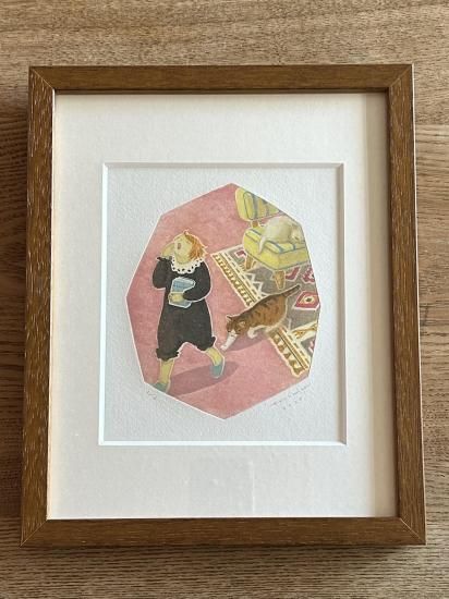 『あくび』額装作品 紙版画多色刷り
